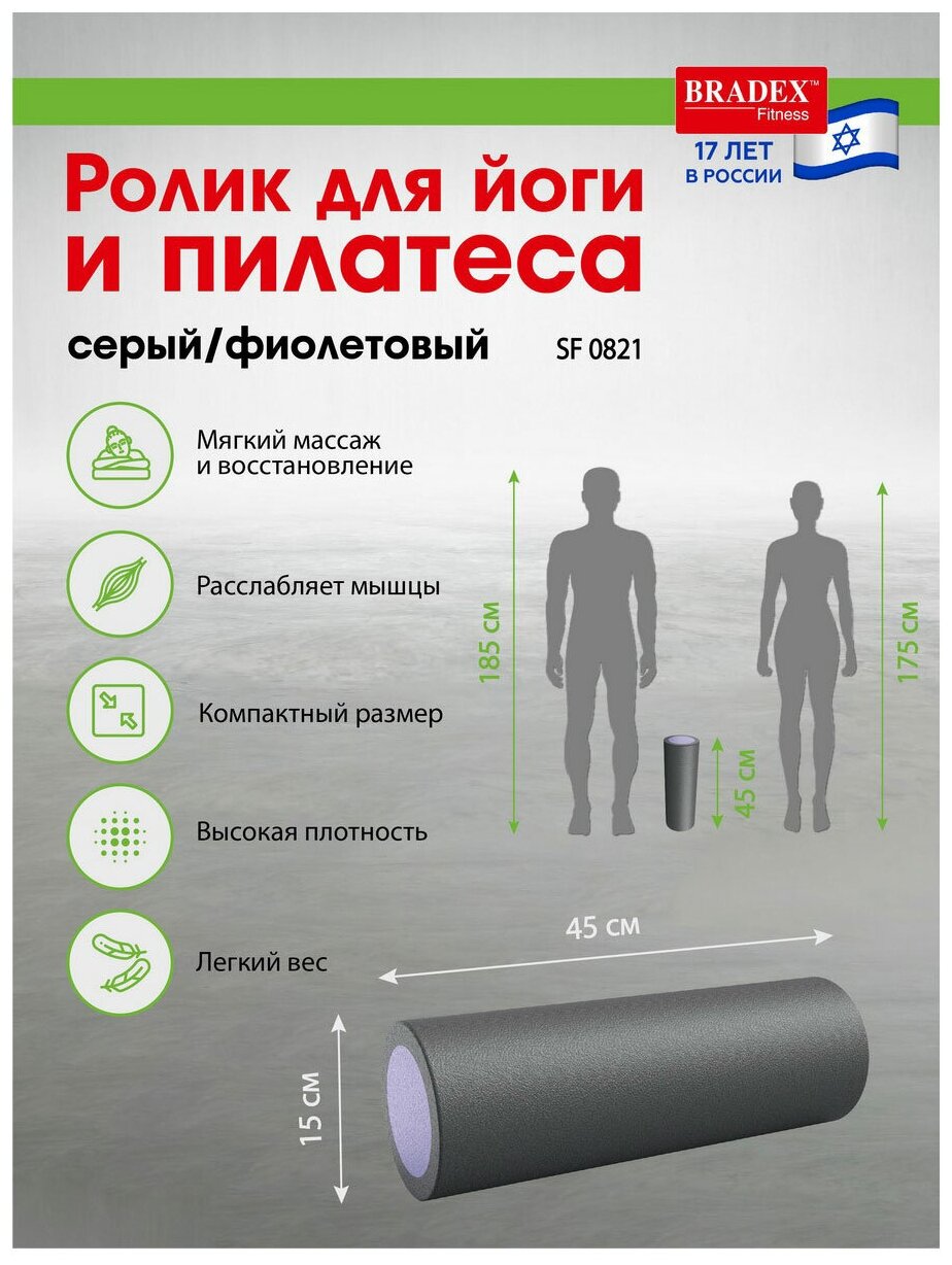 Ролик для йоги и пилатеса Bradex SF 0821 15*45 см серый