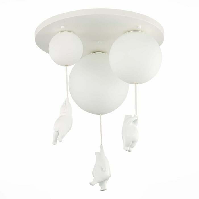 Светильники Modena — забавные фигурки мишек, летящих на воздушном шаре, которые переносят нас в детство. Они с легкостью помогут создать атмосферу всеми любимой сказки о Винни-Пухе в детской комнате или детском кафе. Плафоны выполнены из матового стекла, а фигурки из полирезина. Помимо одиночных светильников с плафонами разного диаметра, в коллекции есть светильник с 3 плафонами на едином основании. В зависимости от диаметра плафона цоколь лампы варьируется от Е27 до G9.