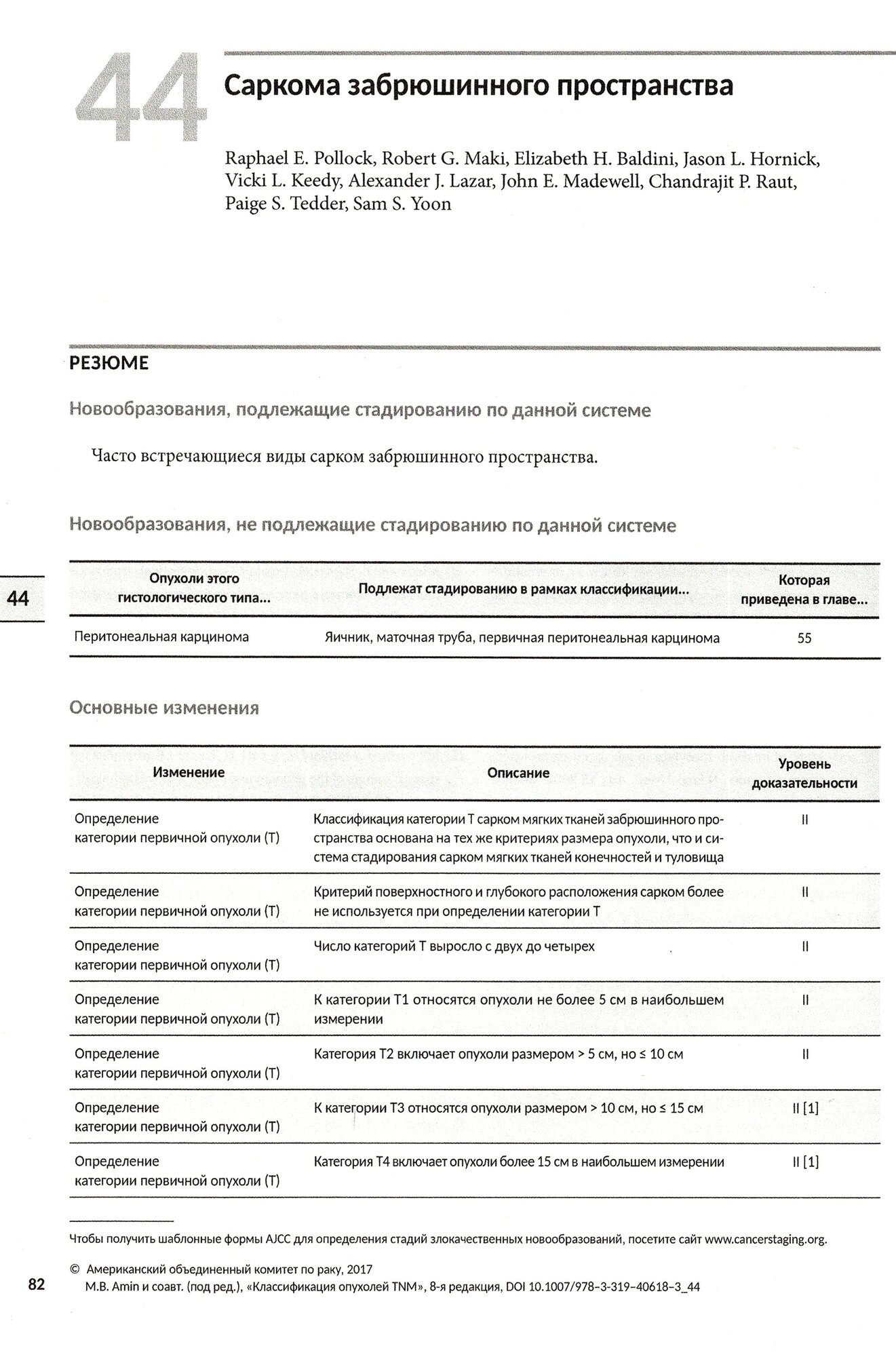 Данное издание руководства является важным шагом на пути к персонализированному подходу в отношении стадирования онкологических пациентов, который призван обеспечить эффективное принятие решений у постели пациента благодаря целому ряду существенных изменений. Каждая глава руководства теперь включает подробный перечень прогностических факторов, разбитых на группы необходимых для определения стадии, рекомендованных для применения в клинической практике и перспективных. Предложены критерии оценки статистических моделей и предикторных шкал. При некоторых локализациях опухолей, включая простату, молочную железу, рак толстой кишки, на основании данных критериев отобраны предикторные модели для клинического применения. Представлено 12 новых систем стадирования, включая ВПЧ-ассоциированный рак ротоглотки, опухоли костей, саркомы мягких тканей различных локализаций и прочее.