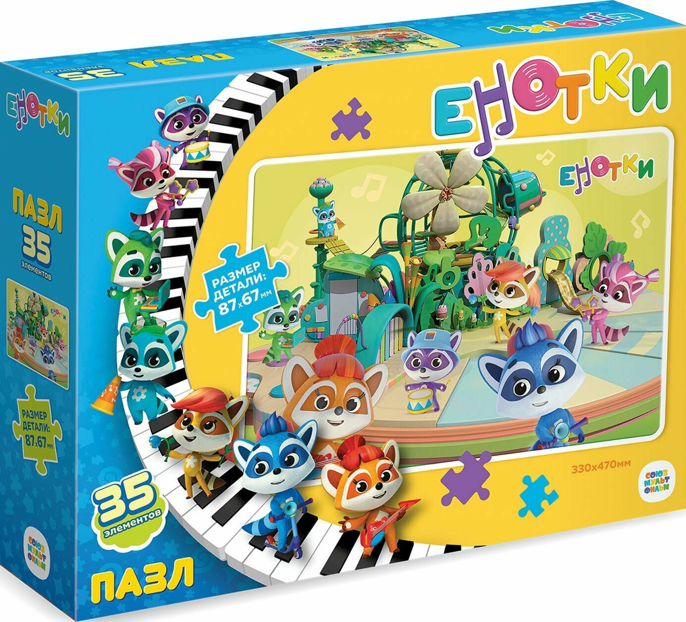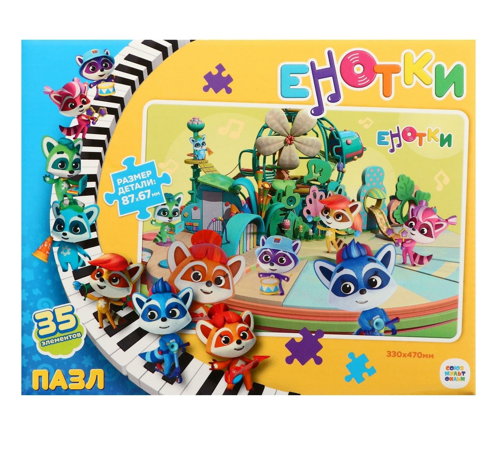 Большой пазл 35 элементов серии Енотки понравится любому ребенку, а сборка яркой картинки принесет радость не только малышам, но и их родителям. Крупные детали пазла удобно ложатся даже в самую маленькую ручку! Соберите всю коллекцию новых пазлов!