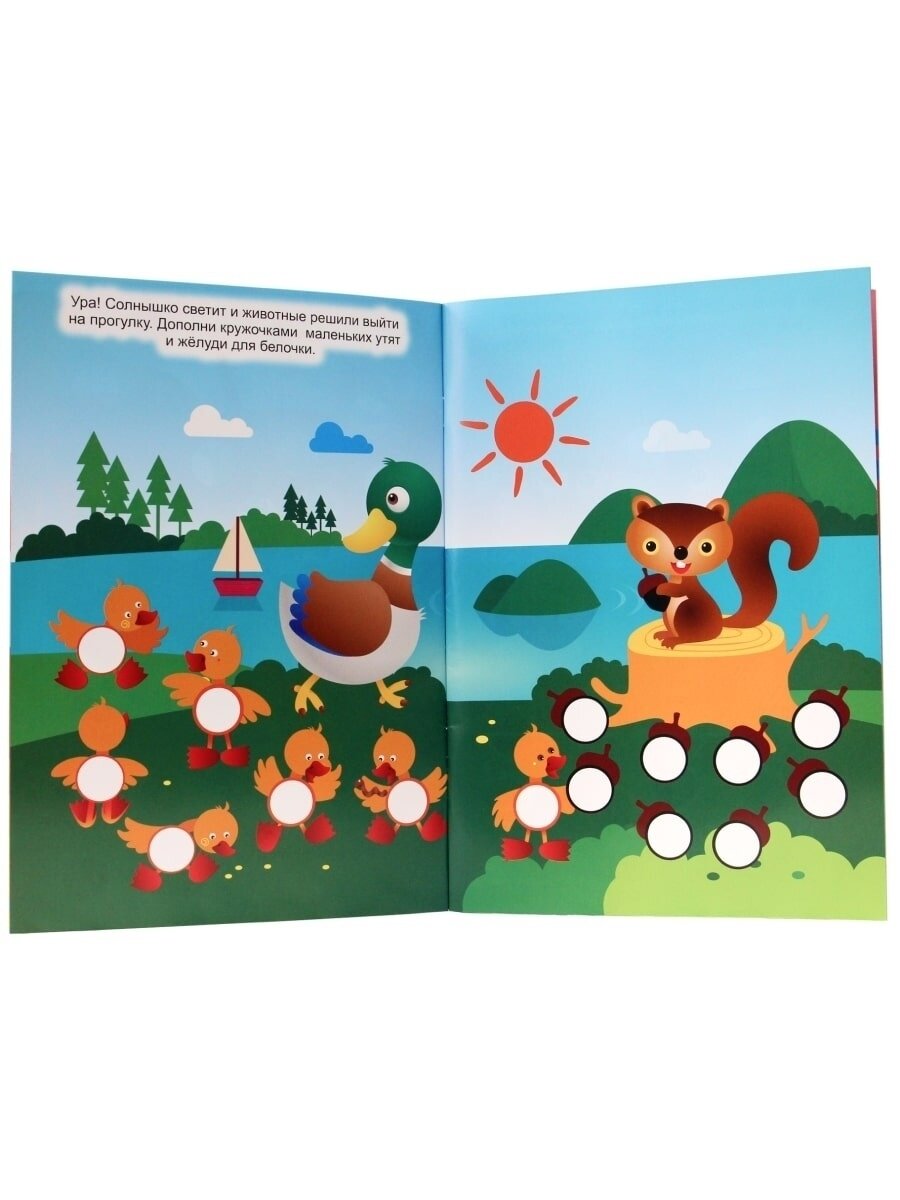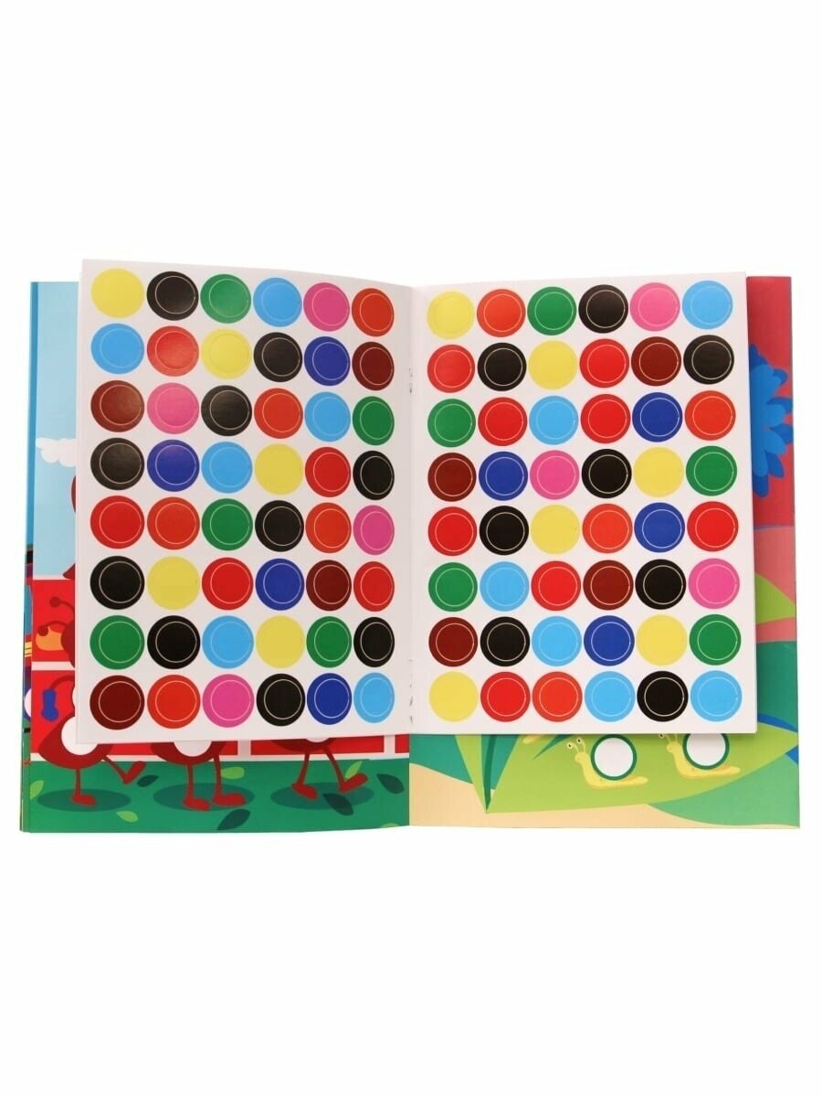 Супер альбом с кружочками поможет занять ребёнка действительно надолго! Ведь в нём около 300 наклеек, которые нужно разместить в соответствующих местах брошюры. Ребёнку непременно захочется заполнить цветными кружочками яркие сюжетные картинки. Наклейки легко отклеиваются от основы, благодаря чему малыш сможет самостоятельно отклеивать кружочки с листа.