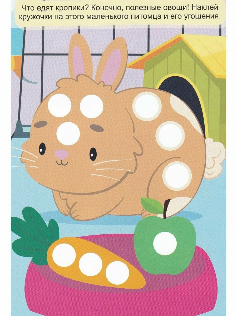 Супер альбом с кружочками поможет занять ребёнка действительно надолго! Ведь в нём около 300 наклеек, которые нужно разместить в соответствующих местах брошюры. Ребёнку непременно захочется заполнить цветными кружочками яркие сюжетные картинки. Наклейки легко отклеиваются от основы, благодаря чему малыш сможет самостоятельно отклеивать кружочки с листа.