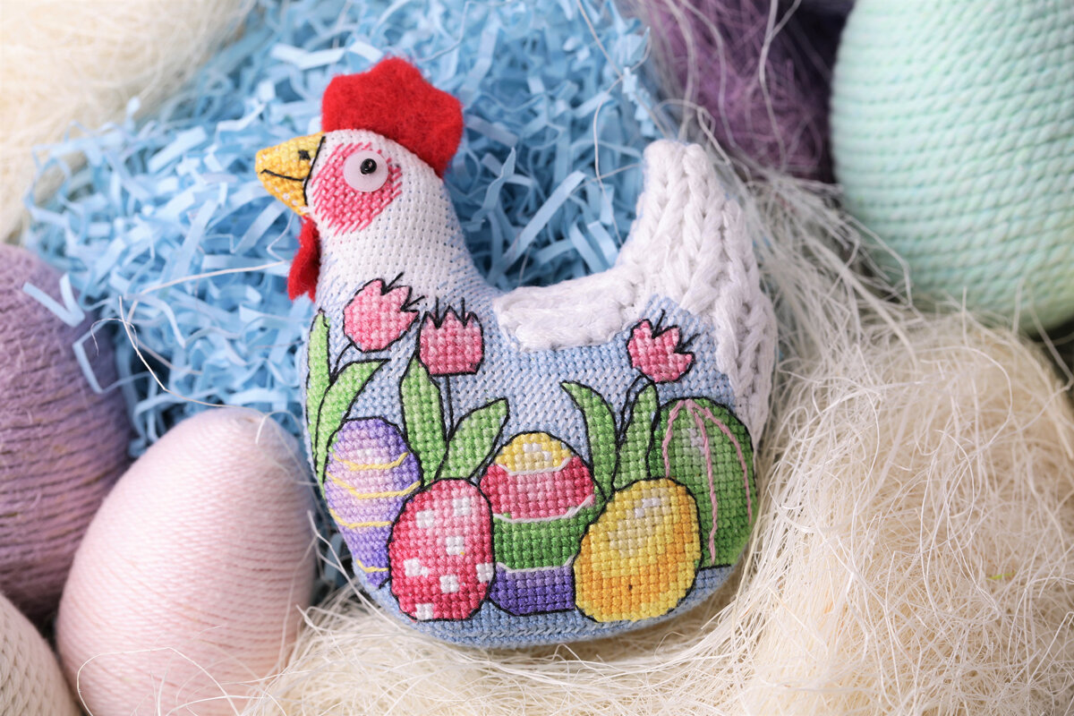 Набор для вышивания "Игрушка. Пасхальная курочка" - это способ вышивания рисунка на канве с помощью иглы и цветных ниток (мулине) или других нитей для вышивания техникой «крестик». Крестик – самый простой в освоении шов. Даже начинающие мастерицы смогут выполнить простую вышивку крестом, ведь для освоения техники не потребуется много времени и сил. Вышивание крестиком легко в освоении и для детей. Для них это не только увлекательное занятие, но и хобби, помогающее в развитии художественного вкуса и чувства прекрасного, которое воспитывает усидчивость и способность концентрировать внимание. Изделия ручной работы — это отличный подарок себе или близким, ими можно украсить любой интерьер. Чтобы самостоятельно изготовить прекрасный сувенир в технике вышивка крестом, понадобятся определенные материалы, которые вы найдете в этом наборе. В набор входят - Канва Gamma Aida 18 - Хлопчатобумажные нитки мулине Gamma на держателе - Бисер - Пайетки - Фетр - КаRTOнная заготовка - Синтепон - Игла для вышивания Gamma - Цветная схема - Инструкция по вышиванию и сборке игрушки