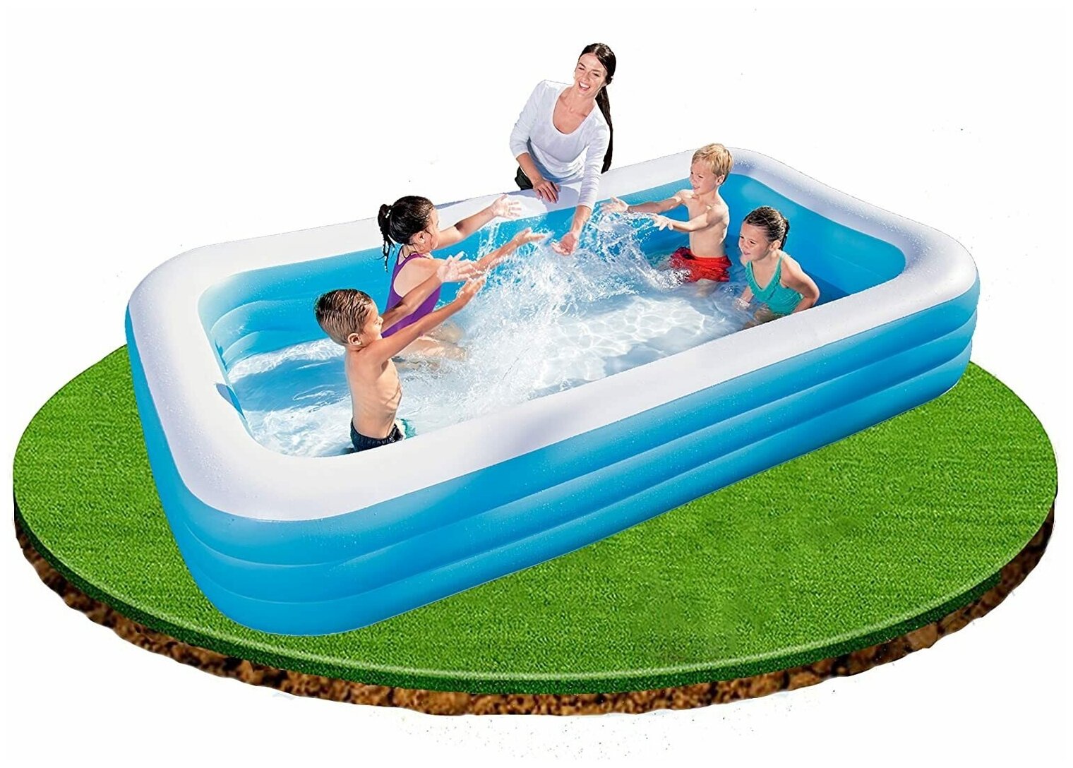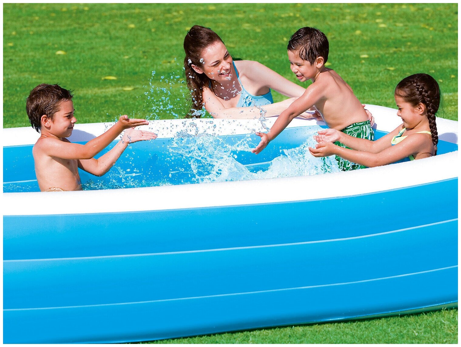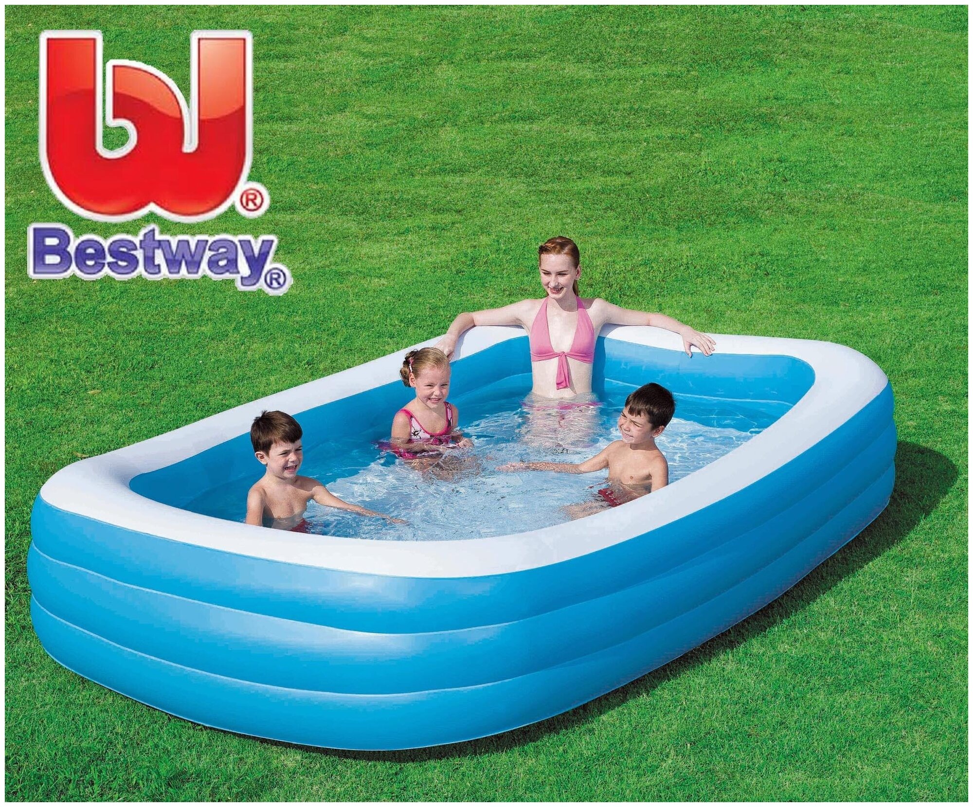 Прямоугольный надувной бассейн Bestway для детей от 6 лет. Изготовлен из высококачественного винила, устойчивый, надежный и безопасный. Имеет мягкие стенки с широкими бортиками и жесткое дно из ПВХ-пленки.