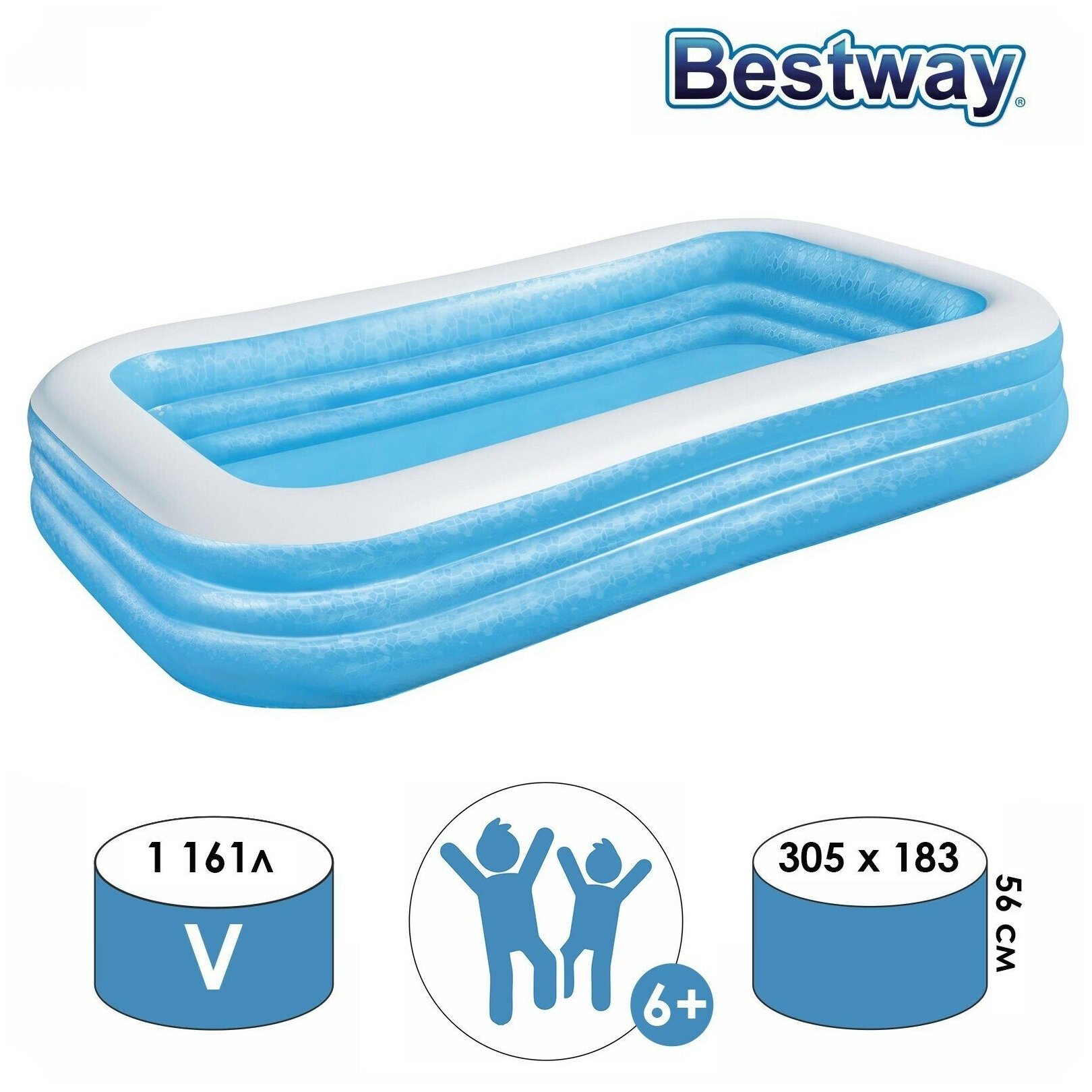 Бассейн надувной прямоугольный голубой 305х183х56см 54009 Bestway 30518356 54009