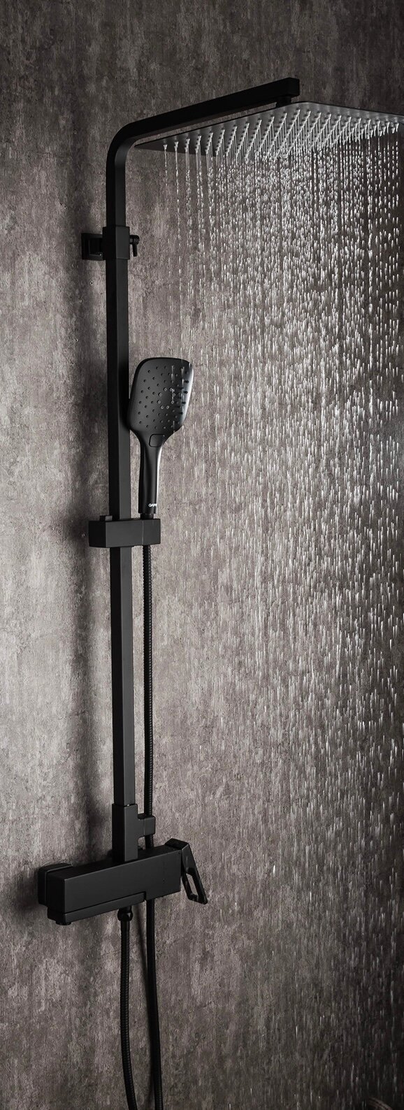 Жена настояла на покупке именно чёрной душевой системы. В магазине было из чего выбрать, но я остановился на этой душевой системе. Мне показалось, что по соотношению цены и качества она наиболее выгодная. Пока пользуемся ею без замечаний. Мы довольны.