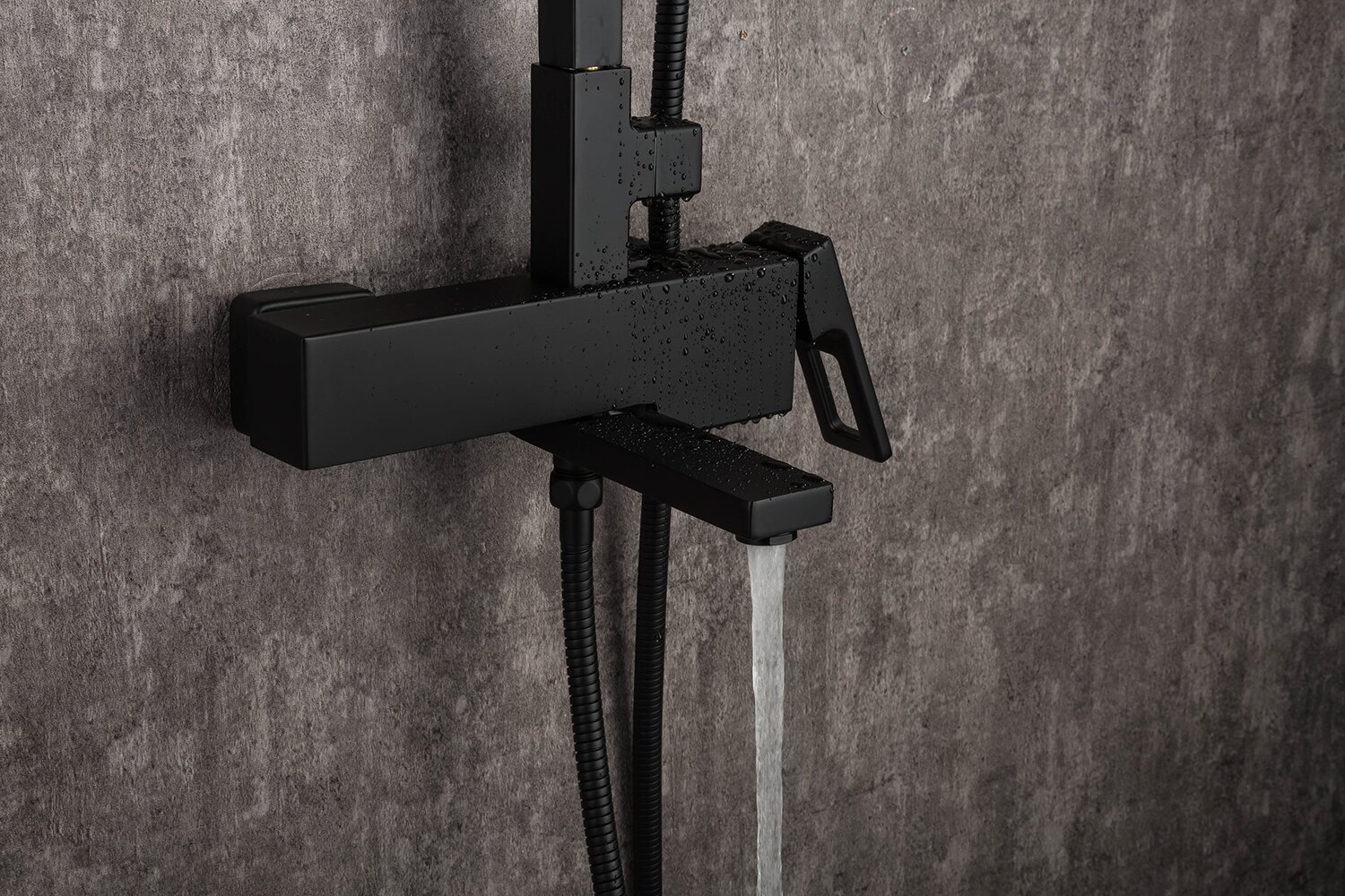 | Комплект поставки | штанга для душа, смеситель с изливом, душевой шланг, ручная лейка, держатель для лейки, тропический квадратный ультратонкий верхний душ, крепление |