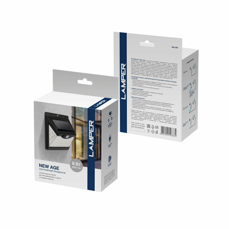На сегодняшний день товар «прожектор lamper led ip65 10вт на солнечной батарее черный 602-236 Датчик движения,освещенности (602-236)» можно купить с кешбеком в 1 магазине: Яндекс.Маркет
