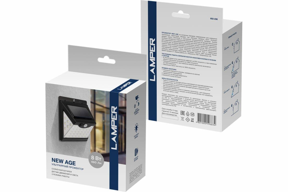 прожектор lamper led ip65 10вт на солнечной батарее черный 602-236 Датчик движения,освещенности (602-236)