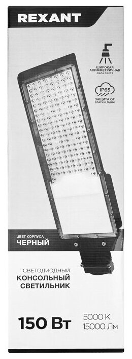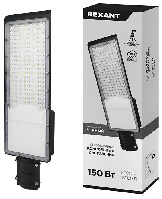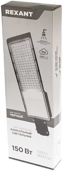 светильник консольный rexant led ip65 150вт 15000лм черный 607-304