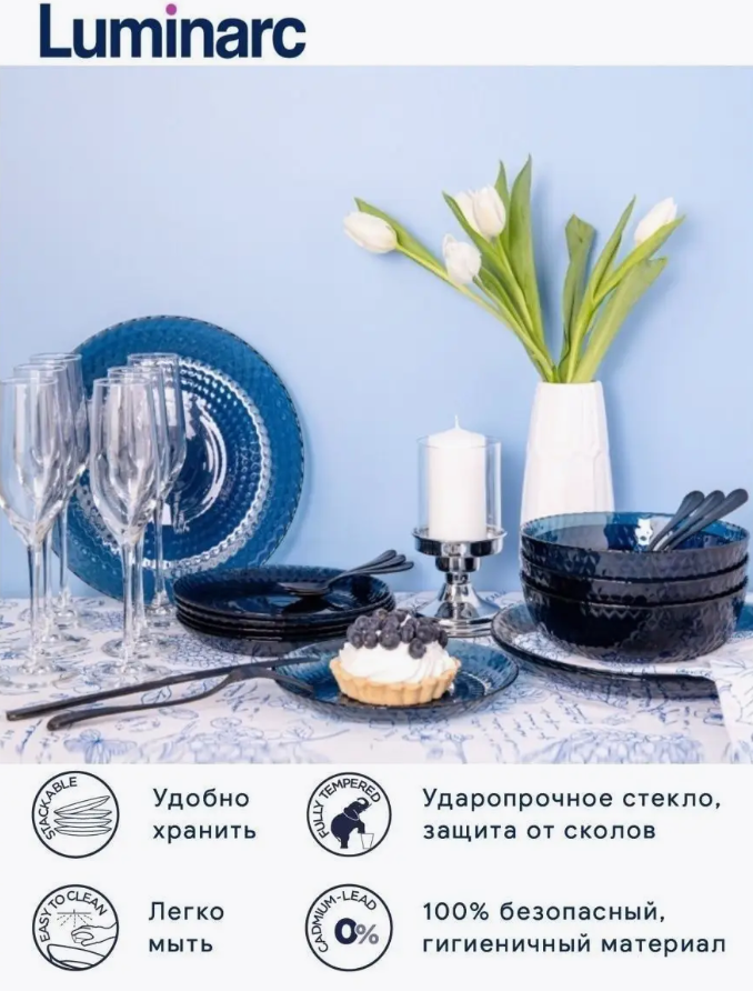 - Посуда Luminarc разработана для постоянного использования, тарелки не потеряют яркости даже при ежедневной сервировке.