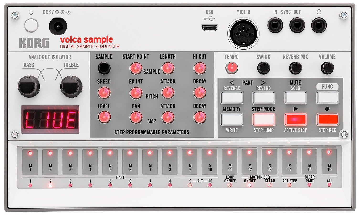 - это компактная и мощная драм-машина на основе сэмплов, которая привлекла внимание и творчество бесчисленных музыкантов по всему миру. Обновленная версия сохраняет все функции, которые сделали оригинал столь популярным, и добавляет порт micro USB, увеличенную память сэмплов (200 слотов), новую обновленную звуковую библиотеку (150 сэмплов) и дополнительные функции для улучшения рабочего процесса. 8-голосая полифония, цифровая реверберация, мощный двойной фильтр и множество ручек для манипулирования семплами, которые делают его мощным сэмплером. Работает от 6 батареек типа АА, имеет встроенный динамик и весит всего 372 г (без батареек) и идеально подходит для автономного использования. Кроме того, благодаря USB-подключению, SYNC IN-OUT и MIDI, volca sample может легко интегрироваться с вашей живой установкой, продакшн-студией и, конечно же, с любым другим volca. Благодаря специальному ПО Librarian (доступен для Mac и ПК) для девайсов volca с использованием USB-порта, возможно управление сэмплами и паттернами и их отправка туда и обратно теперь стали мгновенным и безболезненным процессом.