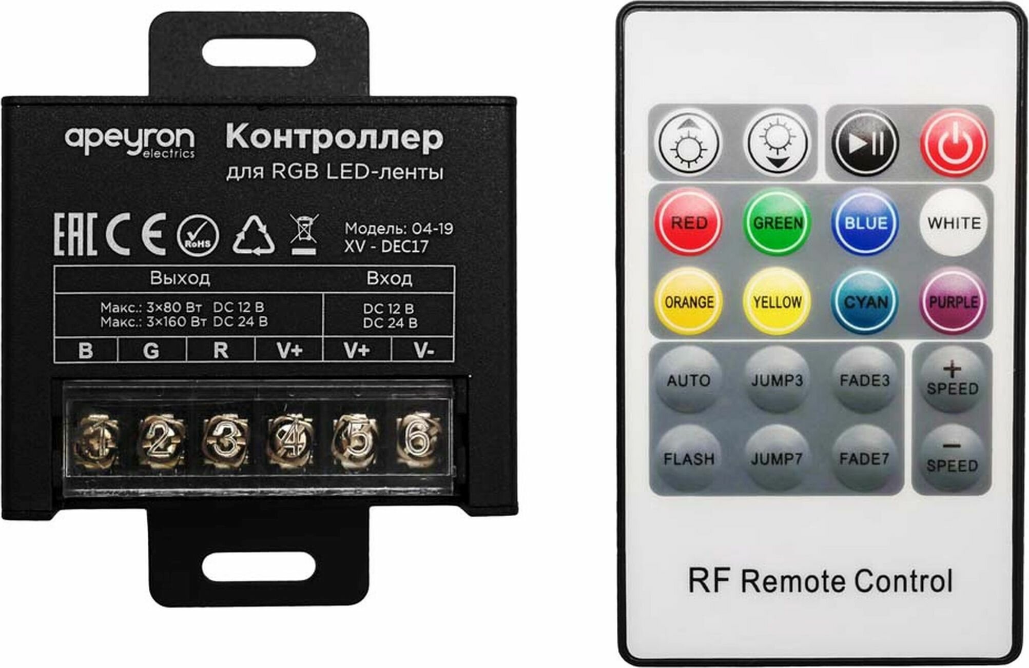 Контроллер RGB Apeyron с пультом 12/24V 04-19