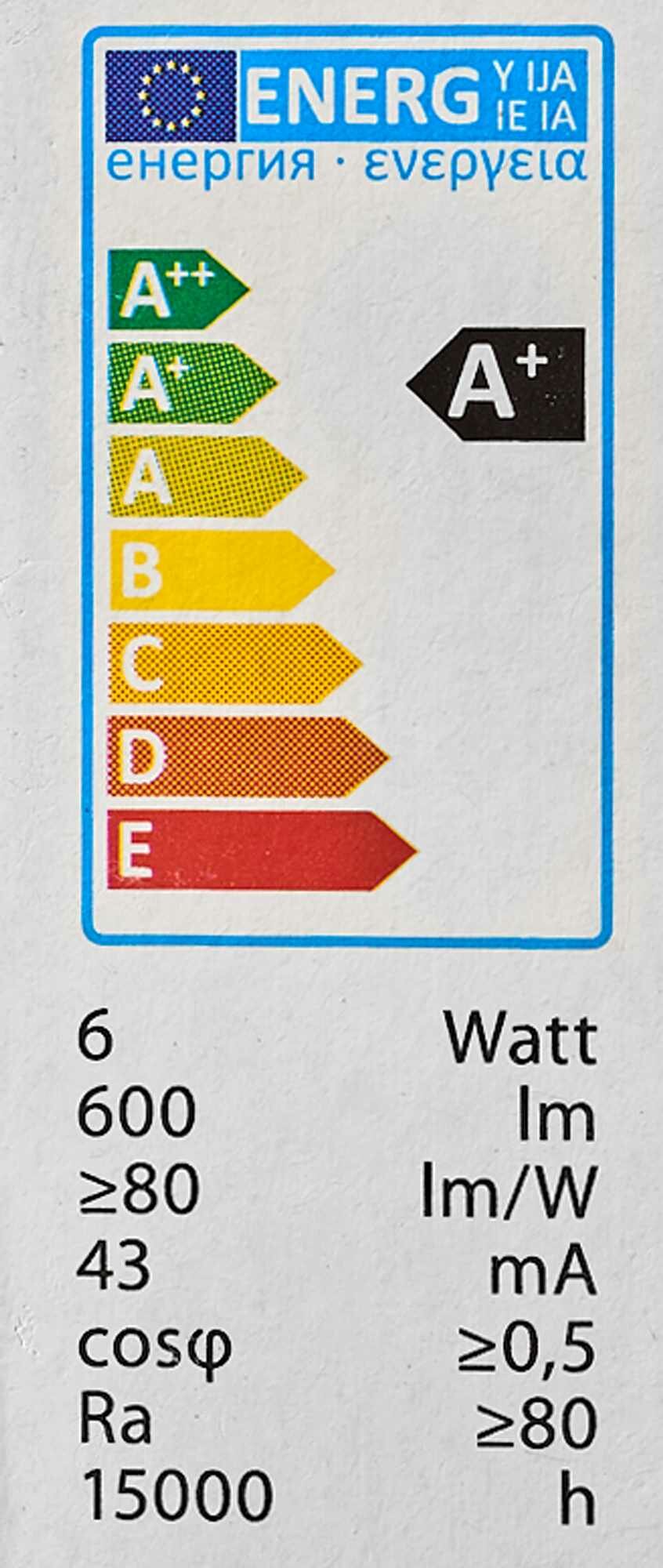 | Мощность лампы, W | 6 |