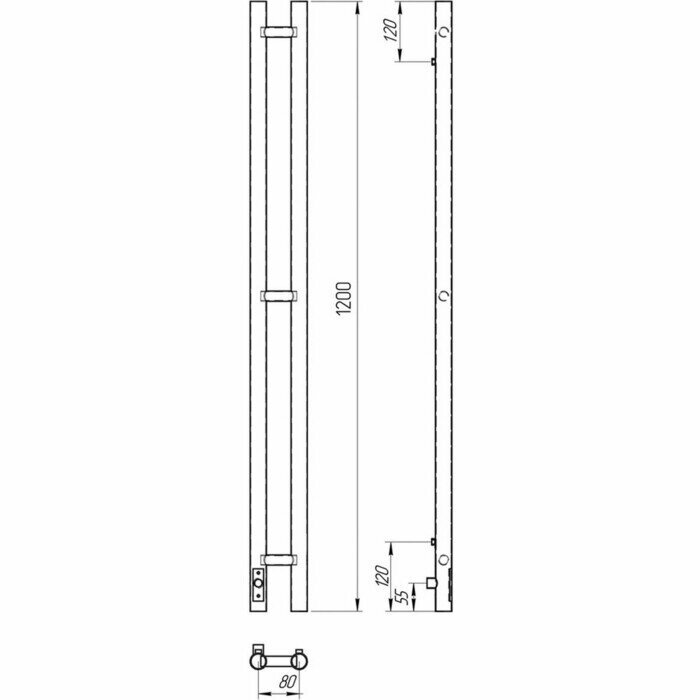 Полотенцесушитель электрический Laris Прайм Дуэт П3 80х1200 левый П2