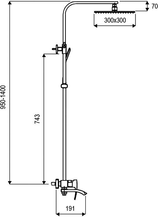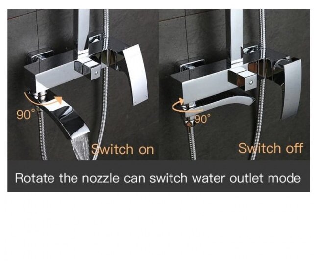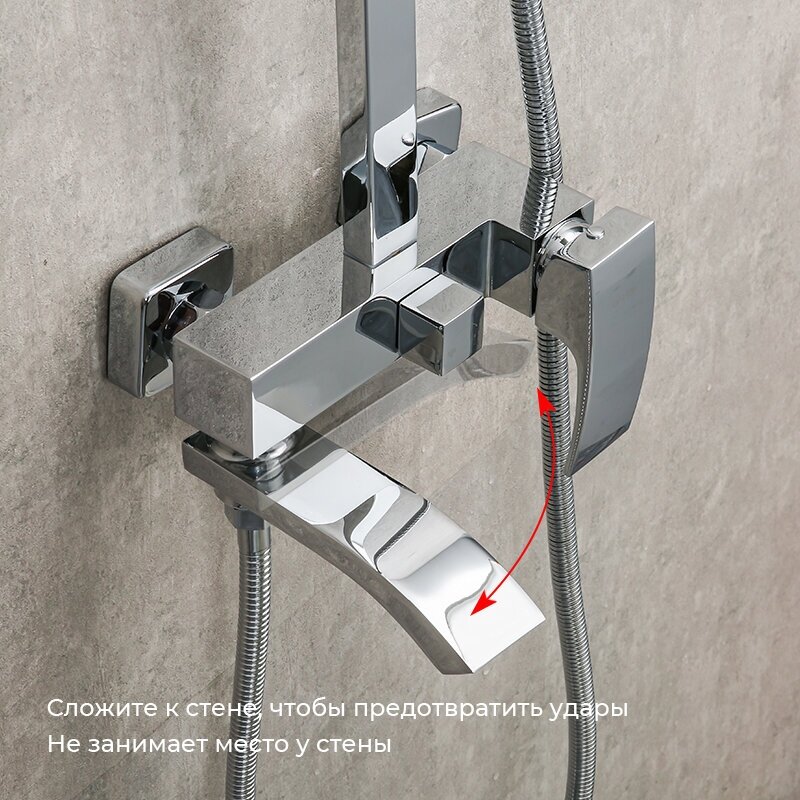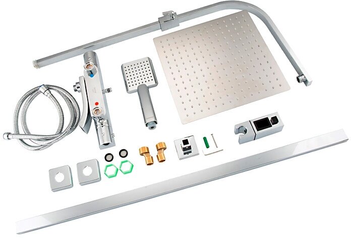 | ВКоробке | Душевая стойка - 1 шт. Верхний душ - 1 шт. Лейка - 1 шт. Шланг - 1 шт. Смеситель - 1 шт. Эксцентрик - 2 шт. Инструкция - 1 шт. |