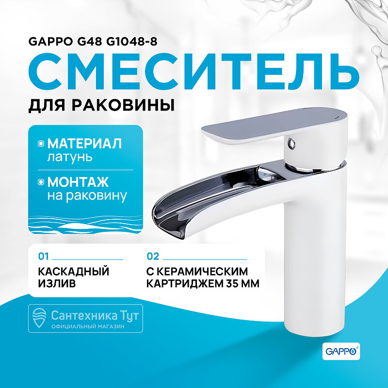 - SMESITEL-ONLINE.RU | КУПИТЬ СМЕСИТЕЛЬ Gappo Noar G1048 белый хром для раковины