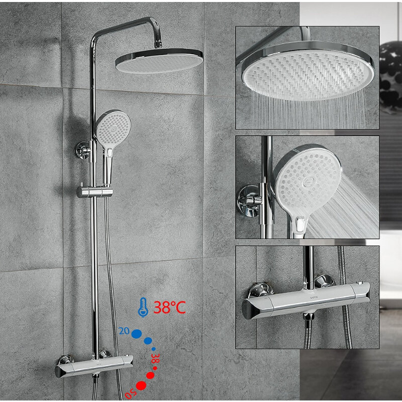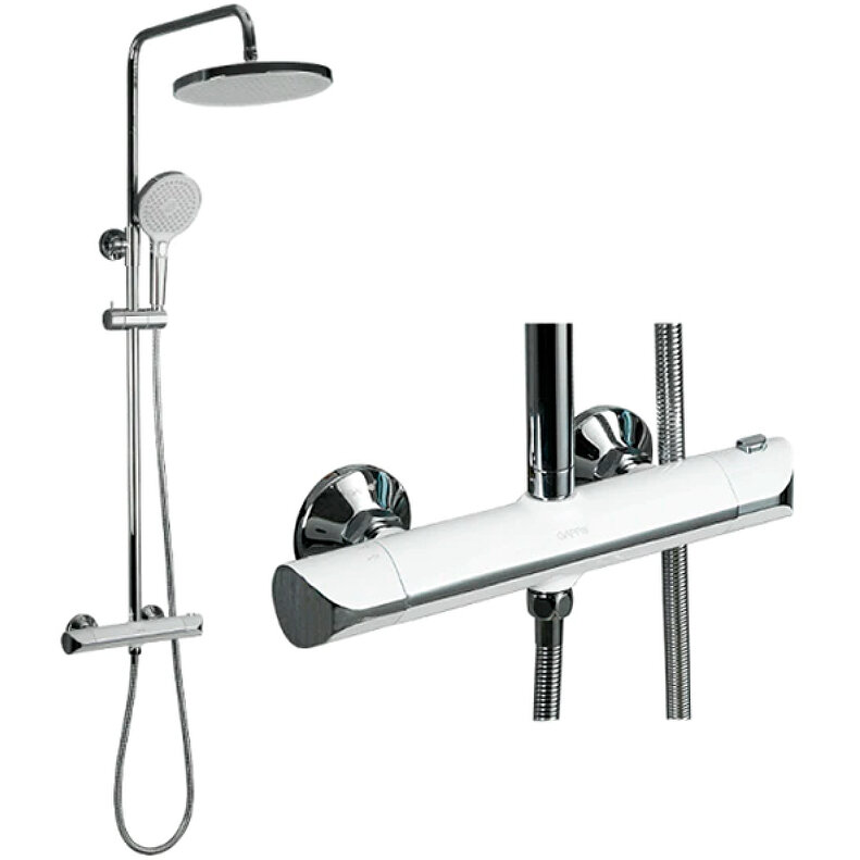 Современная душевая система с темостатом серии G2403-48 GAPPO (ГАППО) выполнена из латуни в цвете хром/белый, имеет глянцевую поверхность, max высота 1350 мм. Комплектуется тропическим круглым душем 260 мм. Испанский картридж Ф40 мм. Душевая лейка с выдвижным держателем. В комплекте душевой шланг. Идеально подходит для установки в душевых углах и кабинах, а так же в ваннах. Гарантия на изделие 5 лет.