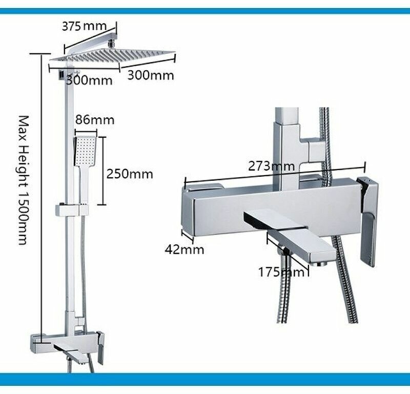 | Комплект поставки | Смеситель с изливом, душевая стойка, держатель стойки, верхний душ, держатель лейки, душевая лейка, душевой шланг, крепление. |