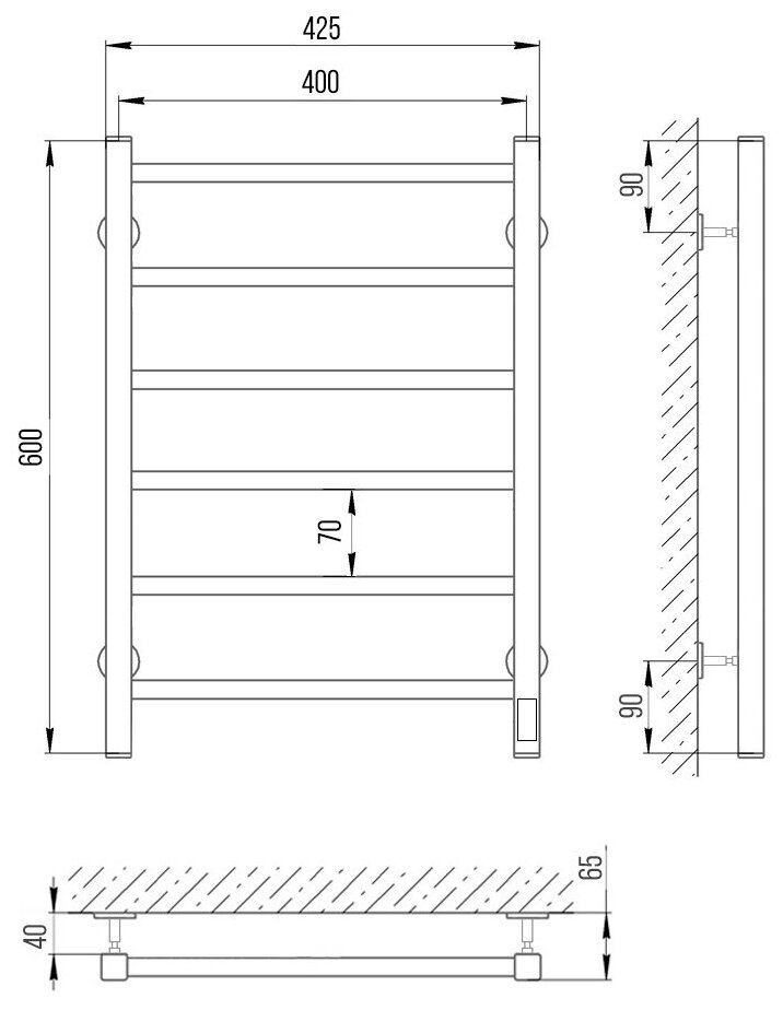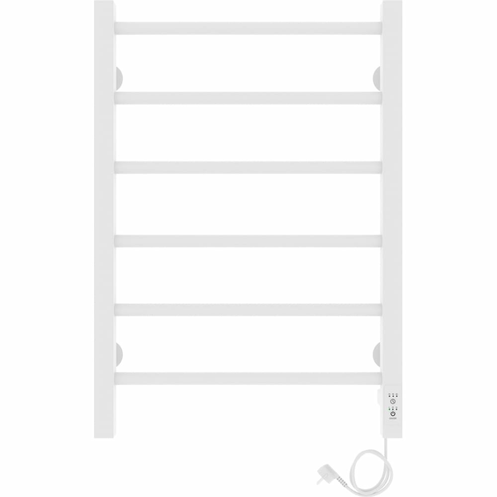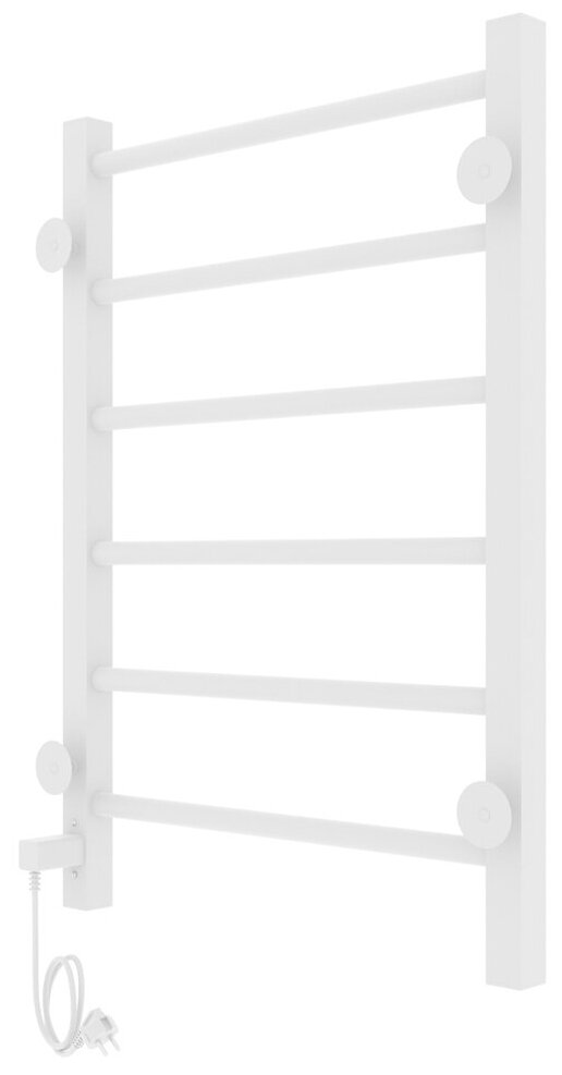 Материал: сталь черная. Покрытие: краска порошковая белая RAL 9016. Диаметры и толщина: стойка □ 25х25, толщина 1,5 мм; перемычка Ø18, толщина 1,5 мм. Регулятор: на вилке. Терморегулятор: да. Температура поверхности изделия*: 50±5°C. Напряжение питания: 220 В