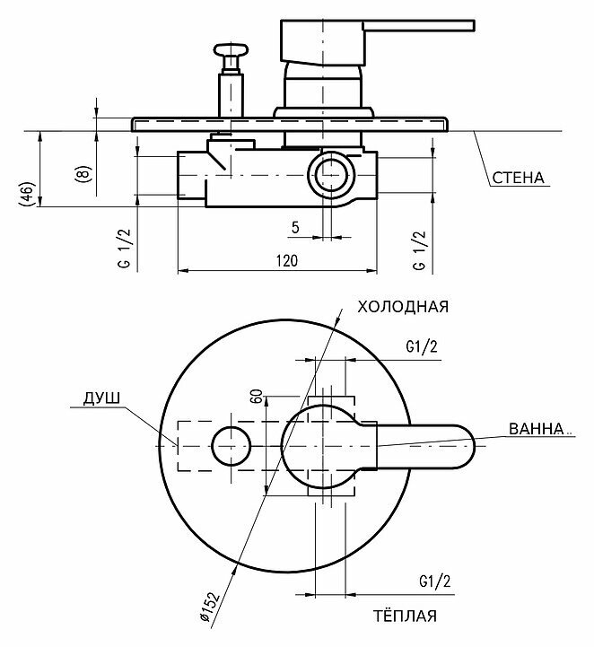 Смеситель скрытого монтажа для ванны Rav Slezak Zambezi ZA086K с хромированной поверхностью. Регулировка температуры и напора воды происходит с помощью металлического рычага. Керамический картридж смесителя производства Венгрии 40 мм KEROX. Скрытый механизм смесителя входит в комплект.
