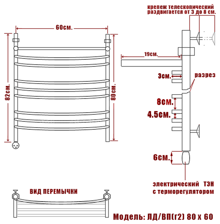 Сервис сравнения цен СкидкаГИД предлагает сравнить цены на товар «Электрический полотенцесушитель Ника ARC ЛД (Г2) ВП 80/60 левый тэн (ЛД Г2 ВП 80/60 лев)»