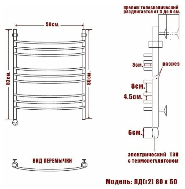 Электрический полотенцесушитель Ника ARC ЛД (Г2) 80/50 левый тэн (ЛД Г2 80/50 лев)