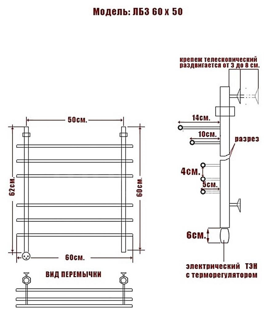 Электрический полотенцесушитель Ника Bamboo ЛБ 3 60/50.