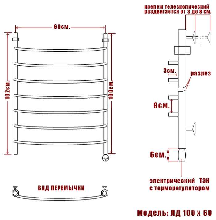 Сервис сравнения цен СкидкаГИД предлагает сравнить цены на товар «Электрический полотенцесушитель Ника ARC ЛД ВП 100/60 правый тэн»