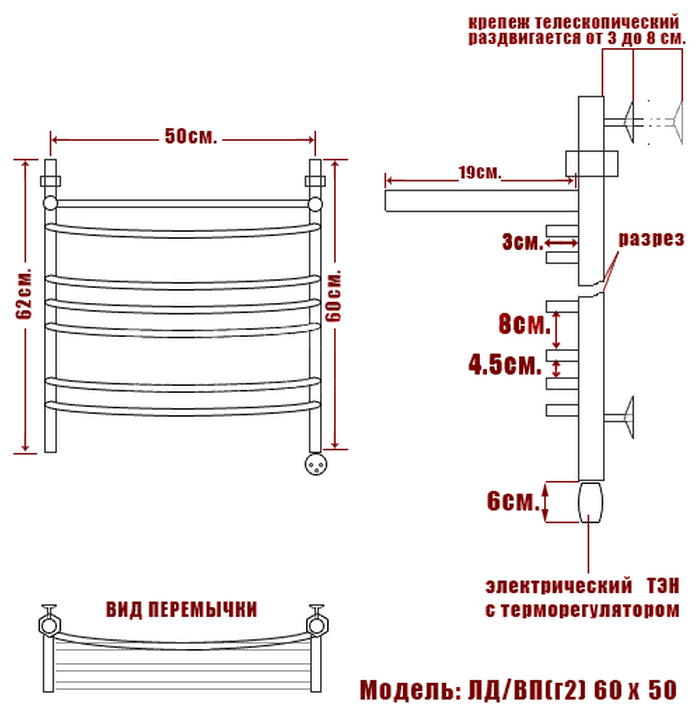 Сервис сравнения цен СкидкаГИД предлагает сравнить цены на товар «Электрический полотенцесушитель Ника ARC ЛД (Г2) ВП 60/50 правый тэн Arc ЛД Г2 ВП 60/50 с полкой, ТЭН справа»