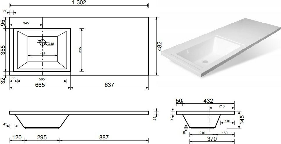 | Материал | Из искусственного камня (литьевого мрамора) |