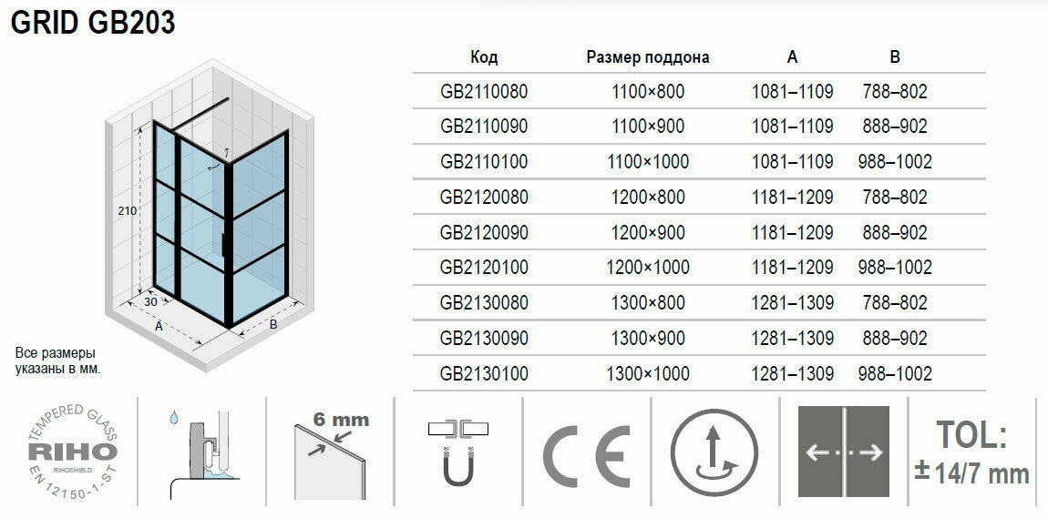 Душевой уголок Riho Grid GB203 120x90. Цвет профиля: Черный. Материал: Алюминий, стекло. Стекло с покрытием RIHO SHIELD. Левая = Правая (переставляемая боковая сторона). Толщина ровного стекла: 6 мм. Профиль с самоподъёмной петлей. В комплекте поставки: уголок, инструкция. Внимание поддон заказывается отдельно.