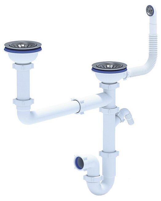 - В комплекте: отводная арматура для двух разноуровневых чаш с выпусками 3 ½ ” (D=90мм) и переливом.