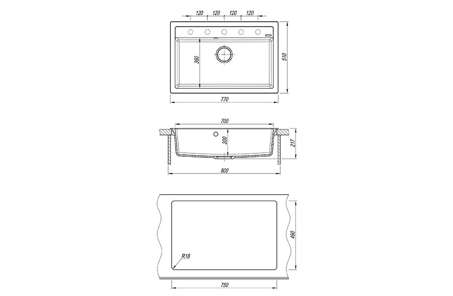 Мойка для монтажа на столешницу с прямоугольной чашей в блок 80. Универсальная форма мойки подойдет под любой дизайн кухни. Увеличенный размер чаши делает мойку невероятно удобной в эксплуатации.