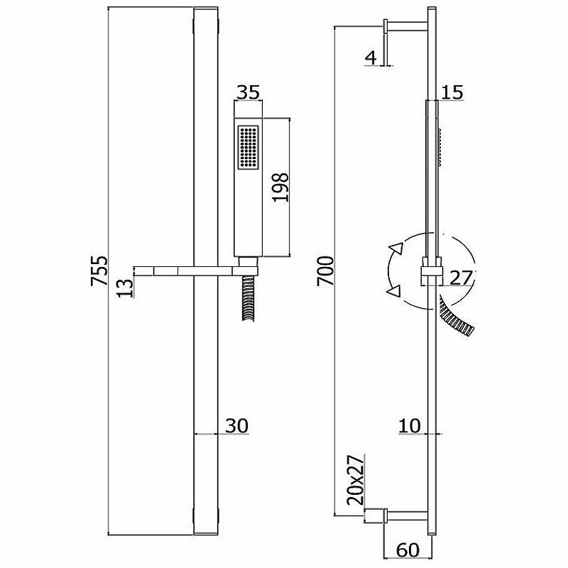 | Вид товара | Гарнитур (шланг и лейка в комплекте) |