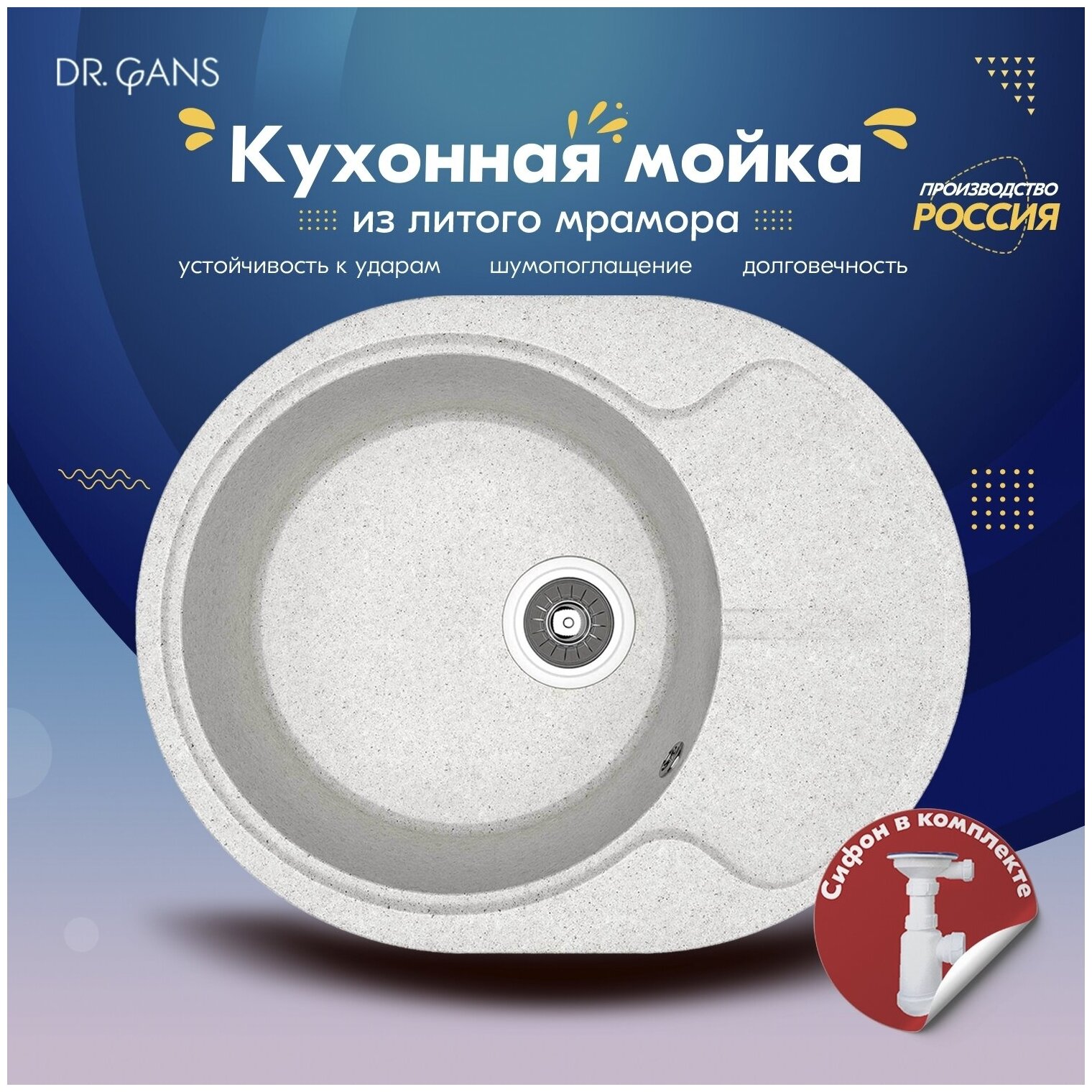Мойка кухонная Dr. Gans комплектуется сливной арматурой. Глубина мойки 200 мм. Размеры: 620х490х217 мм. Цвет: белый
