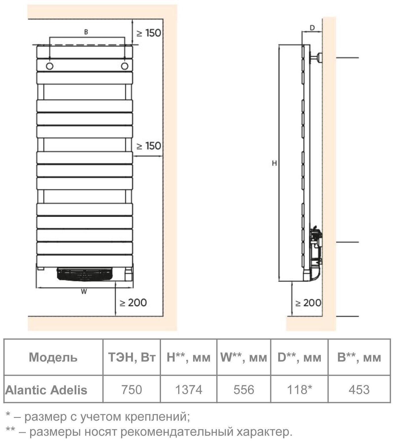 Электрополотенцесушитель Atlantic Adelis - технологичная модель полотенцесушителей. Устройство можно использовать в любое время, просто подключив его к электричеству. Оборудование используется как для сушки полотенец, так и для прогрева помещения, для этого предусмотрены различные режимы работы. Полотенцесушитель в ванной позволяет равномерно прогревать помещение и уменьшать уровень влажности, что предотвращает появление грибка и плесени на стенах. Устанавливать оборудование рекомендуется в ванных комнатах квартир или частных домов на высоте не менее 20 см от пола и на расстоянии не менее 15 см от стен, потолка и мебели. Соблюдение этих норм значительно повышает эффективность прогрева помещения.