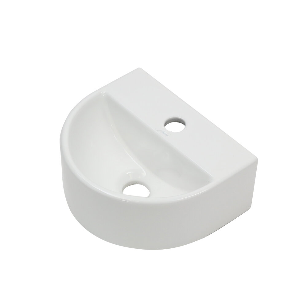 Ширина: 310. Глубина: 255. Высота: 120. Форма: Полукруглая. Без отверстия под перелив. С отверстием под смеситель. Тип раковины: подвесная. Цвет: белый