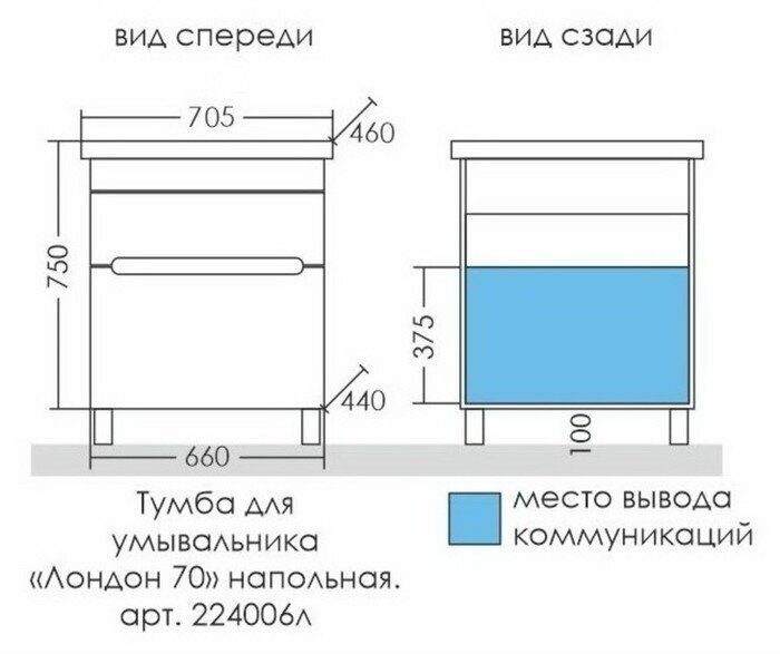 - Габариты тумбы (ШхВхГ): 660х490х440 мм.