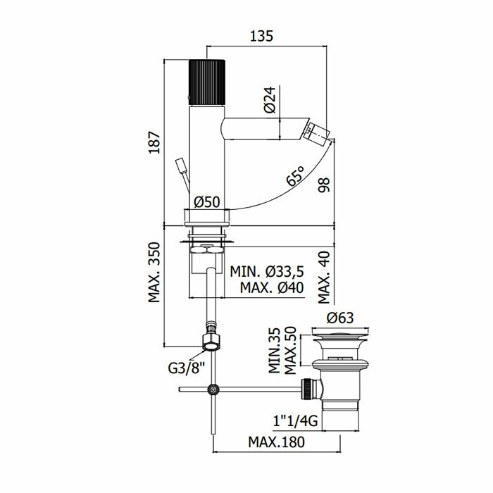 | Длина излива, мм | 135 |