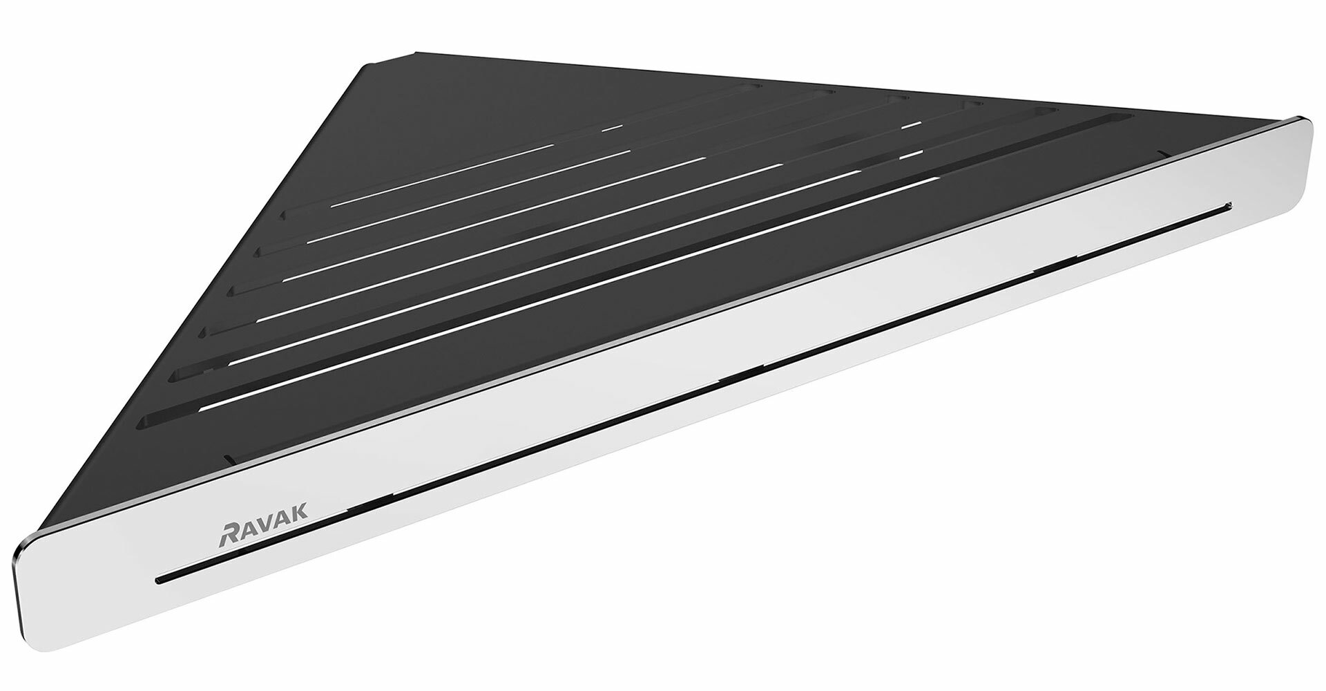 Угловая настенная полка Ravak Slim - это дизайнерский аксессуар для современной ванной комнаты. Полка подходит для создания места для хранения в душе, над ванной, под раковиной и т.д. Поверхность полки перфорирована, чтобы вода не скапливалась на поверхности, но при этом обеспечивала устойчивое размещение предметов. Посередине есть три нижних крючка, которые удержат даже более тяжелый предмет, такой как фен.
