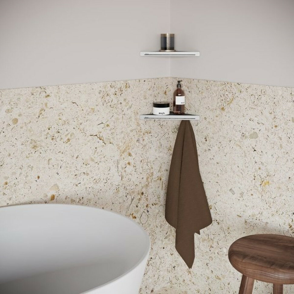 Угловая полка Slim C - это дизайнерский аксессуар для современной ванной комнаты. Она подходит для создания места для хранения в душе, над ванной, у умывальника и т. д. Расположив несколько частей друг на другом, вы создадите впечатляющий набор с дополнительным пространством для хранения всего, что вам нужно разместить в ванной комнате.