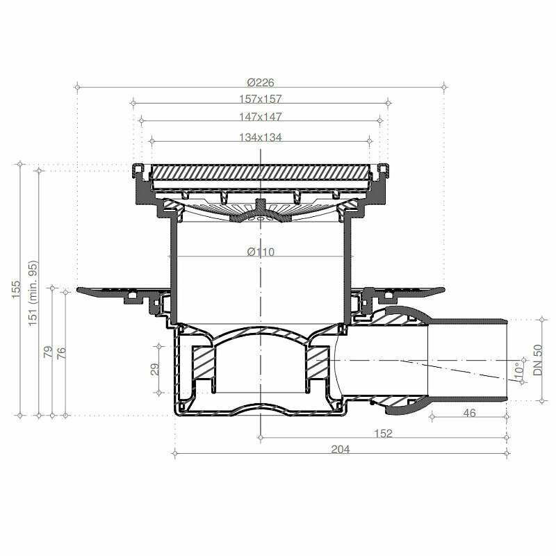 Применение: ванные и душевые комнаты в квартирах, домах, гостиницах, фитнес-центрах, больницах, бассейнах, коммерческие кухни, супермаркеты, рестораны, аэропорты, застекленные балконы и т.д. Преимущества модели: регулируемый угол выхода на 15; наличие в комплектации изолирующего воротника (гидроизоляционного кольца и фланца) делает ненужным использование битумных и пластиковых лент (для герметизации между стяжкой пола и плиткой); высокое качество материалов; легкость монтажа; простота обслуживания; длительный срок эксплуатации. Металлические детали: нержавеющая сталь AISI 304 SS, класс К3 (нагрузка до 300 кг, в соответствии с европейским стандартом качества EN 1253).