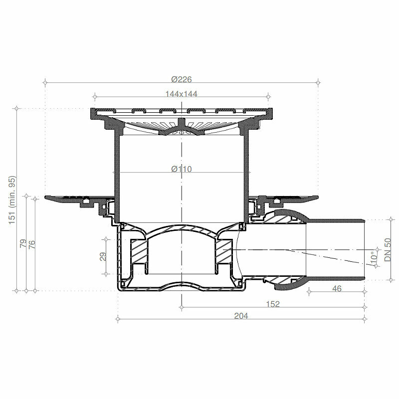 Применение: ванные и душевые комнаты в квартирах, домах, гостиницах, фитнес-центрах, больницах, бассейнах, коммерческие кухни, супермаркеты, рестораны, аэропорты, застекленные балконы и т.д. Преимущества модели: регулируемый угол выхода на 15; наличие в комплектации изолирующего воротника (гидроизоляционного кольца и фланца) делает ненужным использование битумных и пластиковых лент (для герметизации между стяжкой пола и плиткой); высокое качество материалов; легкость монтажа; простота обслуживания; длительный срок эксплуатации. Металлические детали: нержавеющая сталь AISI 304 SS, класс К3 (нагрузка до 300 кг, в соответствии с европейским стандартом качества EN 1253).