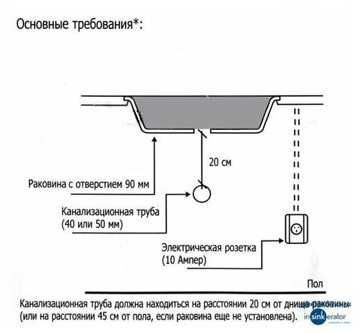 Принцип работы: пищевые отходы помещаются в сливное отверстие мойки, затем они попадают в измельчающую камеру прибора и выводятся в канализацию.