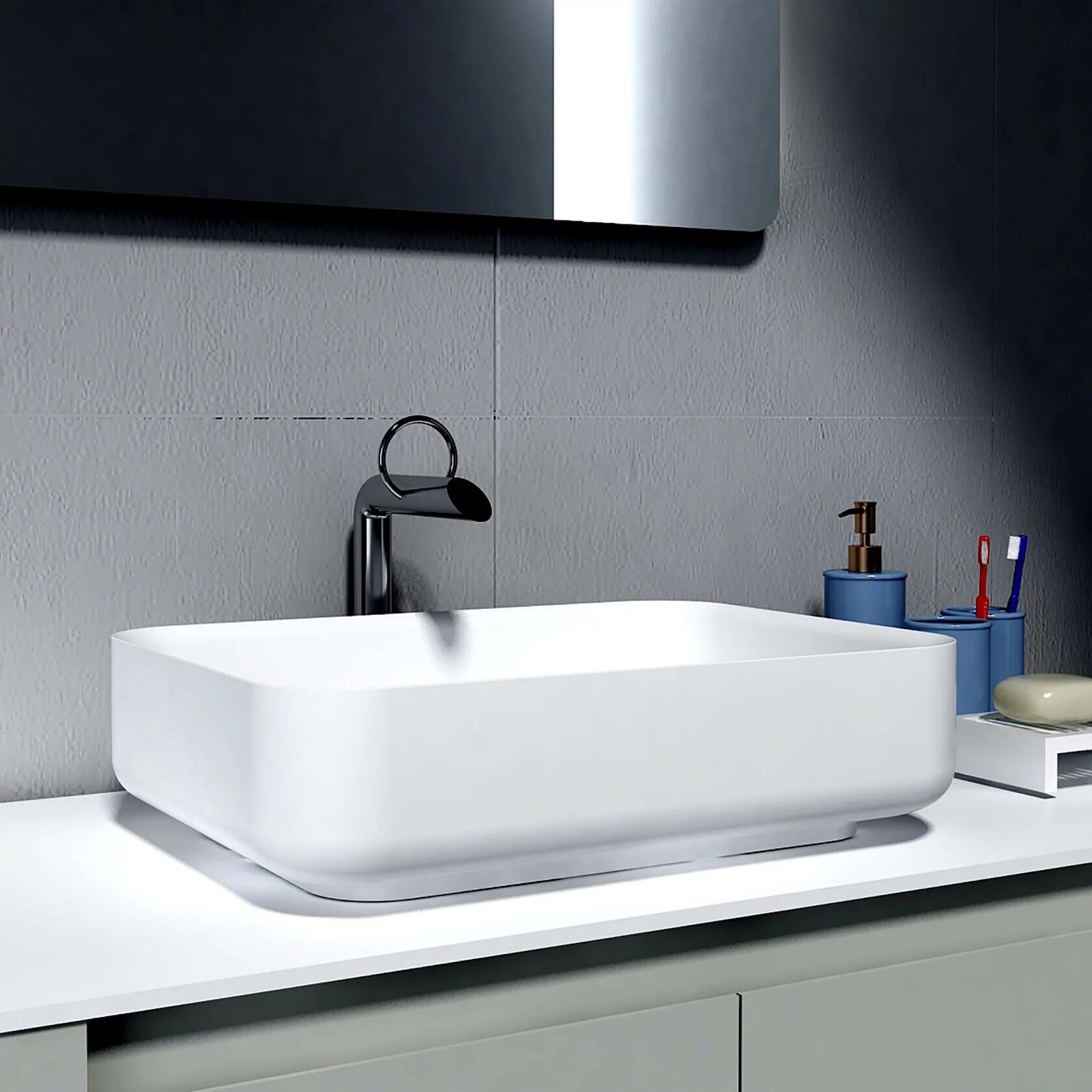 Раковина MonteBianco Loreto lungo 495 12017 белая матовая, накладная, без отверстия под смеситель, без перелива, устанавливается на столешницу или мебель сверху.