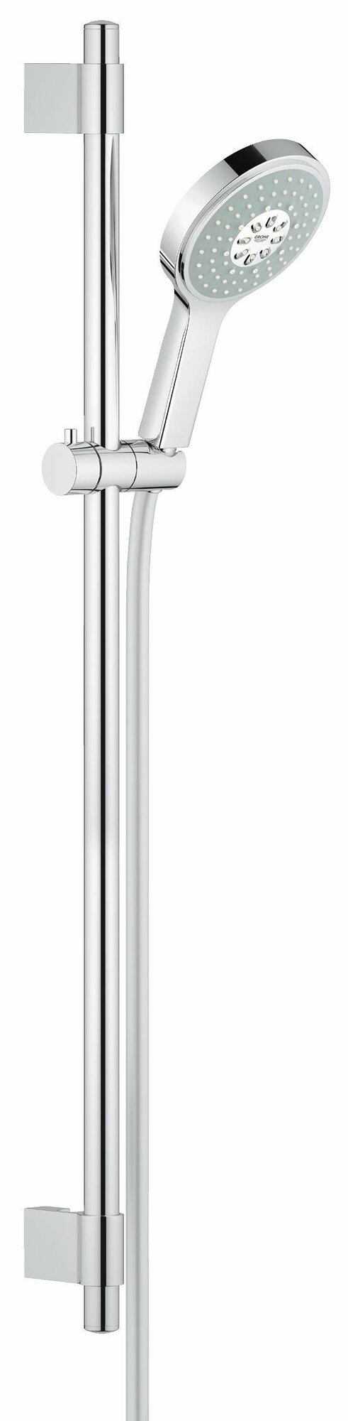 Включает в себя: ручной душ Massage (27 221 000); душевая штанга 900 мм (27 500); душевой шланг 1750 мм (28 388 000. Полочка GROHE EasyReach (27 596). GROHE DreamSpray превосходный поток воды. GROHE StarLight поверхность. GROHE SprayDimmer. GROHE QuickFix (регулируемое расстояние между настенными креплениями штанги позволяет использовать для монтажа уже имеющиеся отверстия в стене). С системой SpeedClean против известковых отложений. Внутренний охлаждающий канал для продолжительного срока службы. Twistfree против перекручивания шланга. Может использоваться с проточным водонагревателем. Минимальное давление 1,0 бар.