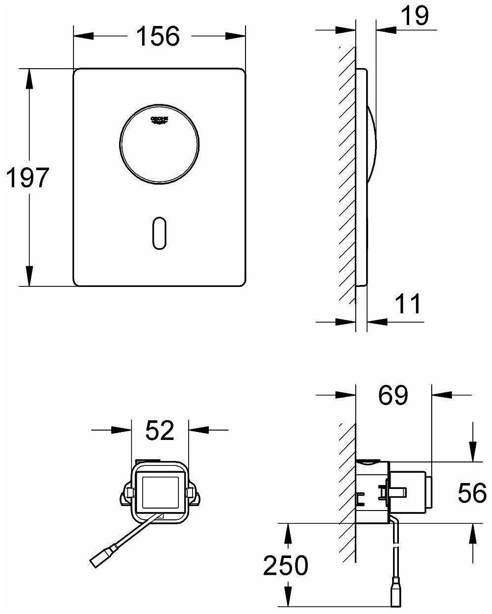 Кнопка смыва Grohe Tectron Skate 37419SD0 для писсуара, инфракрасная, с механической функцией смыва, сталь - это знаменитая на весь мир продукция от компании Grohe. Высокое качество из Германии - это не слова, а философия нашего времени. Компания с многолетней историей несет в себе инновационные разработки и предлагает Вам лучшую продукцию для получения максимального удовольствия при ежедневном использовании. Особенности и комплектация: с дополнительной механической функцией смывас инфракрасным датчиком для двусторонней связи для мониторинга, настройки и сервисного обслуживанияс адаптером 100-230 V переменного тока, 50-60 Hz, 6 V постоянного токадля 1 объема смывадля смывного бачка GD 2сервомотордля скрытого монтажафронтальная панель 156 х 197 ммкрепление скрытое7 предустановленных режимов:- автоматический смыв- моющий режимпредварительная промывка вкл/выклдополнительные функции и точные настройки с помощью пульта дистанционного управления 36 407регулируемый смыв (3-9 л) вручную или с помощью пульта управления