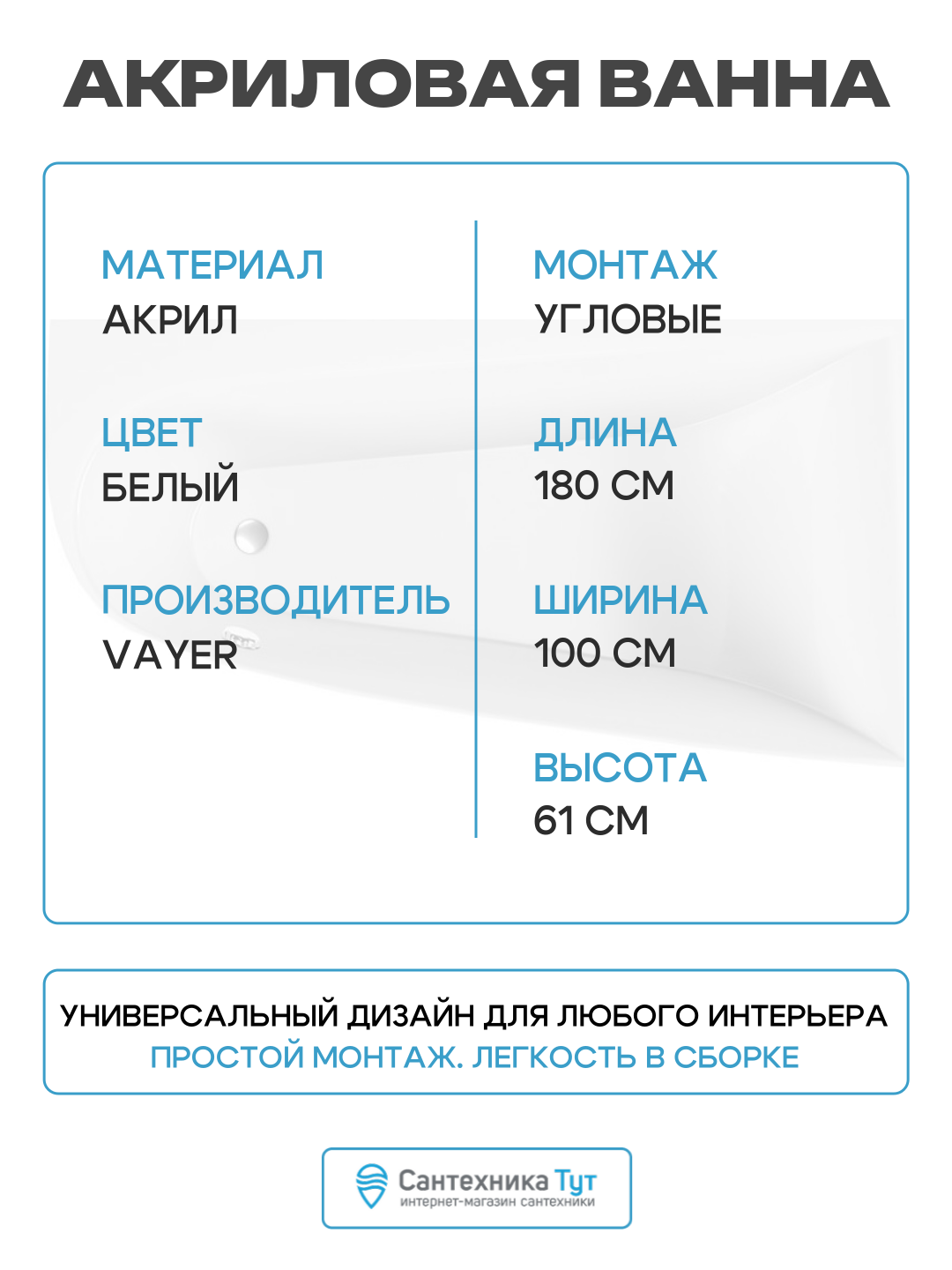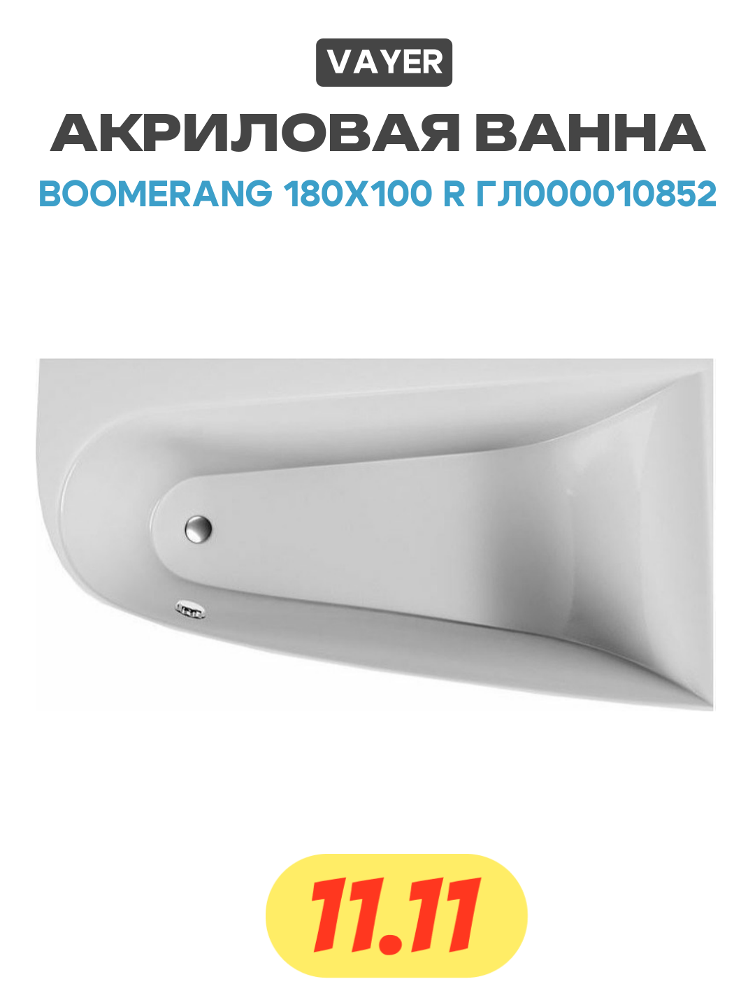 Сервис сравнения цен СкидкаГИД предлагает сравнить цены на товар «Акриловая ванна Vayer Boomerang 180х100 R Гл000010852»