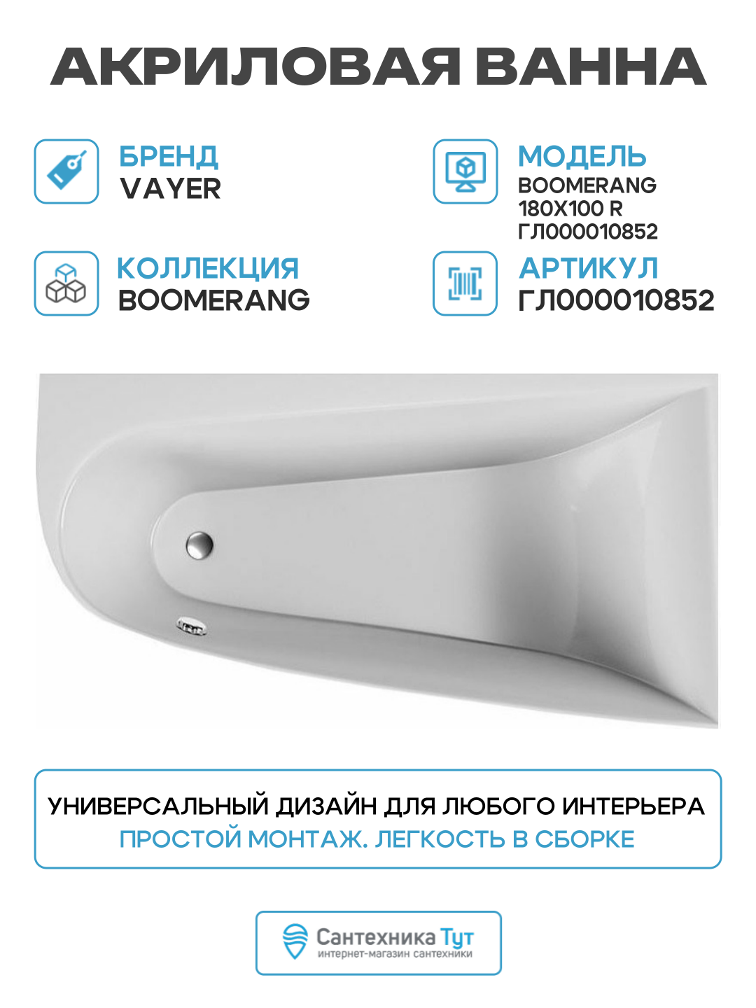 Акриловая ванна Vayer Boomerang 180х100 R Гл000010852